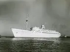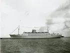 Foto från 1959 visande turist&passagerarmotorfartyget AFRIKA av Trieste under gång