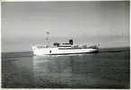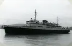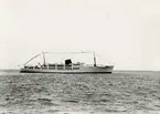 Foto i svartvitt visande passagerar-motorfartyg AMERIKA av Köpenhamn i Köpenhamn under 1930-talet.