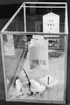 Fru de Bruyn, maka till dr. FF de Bryun, Nederlands Spoorweg Museum, Utrecht, med dotter framför montern med modellen till postgården i Grisslehamn, på nedre botten.
