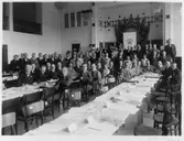 Från vänster: f.d. förste postexpeditör Hildur Öijer, postmästare B Kläning, assistent J E Ravner, Köpenhamn, förste kontrollör E Dahlén, notarie R Markland, postfullmektig Ingvald Lid, Oslo.