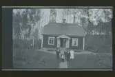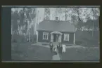 "Regina o Evals Johansson rättare Mo, Fogelstad." En familj framför sitt hus.