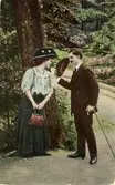 "Frieri och kurtis". Ungt par vid träd. Vykort.
