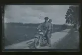 "Svea Forsman och Gustav Larsson, Formartorp." Ett par på motorcykel.