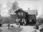 Nårunga. Stående från vänster: okänd, Einar Hallhagen, Frithiof Hallhagen, Valborg Benjaminsson, Dagmar Benjaminsson, övriga okända