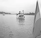 [från fotobeskrivningen:] "FINNGRUNDET flyttas från Rosenvik till Wasavarvet"; "3.6.1970"