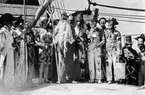 En del av Najadens besättning har maskerad och poserar fint framför kameran.