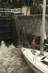Slussning i Nils Ericsson slussen. Slussplan mot Östra Slussgatan.
