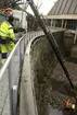 Stenkross vid Heås, Gällared för vägbygget Gällared-Kärnebygd 1925-1926. Fyra män står med skyfflar och en stor hund framför stenkrossen.
