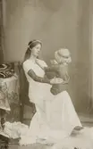 "Rida ranka". Foto, tablå, 1914. En ung kvinna, Blanka av Namur, leker med sin son på knäet.