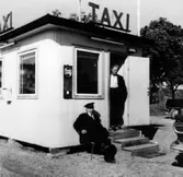 Tre droskchaufförer i väntan på kunder i maj 1952. Tidigare hade de en parkbänk att sitta på , men den här våren fanns ingen bänk på platsen. Namn på herrarna från vänster: Axel Svensson, Ragnar Andersson och Erik Edberg. Den främre bilen var av märket Austin, välkänd från London. Bilarna står på Järnvägsstationen. Linköpings tågstation. Taxi. Paus, ... 385 bilder om Linköping på 1950-talet från tidningen Östgötens arkiv. Framtidstro och optimism är ord som sammanfattar Linköping på femtiotalet. Årtiondet innebar satsningar för att förbättra linköpingsbornas livsvillkor. Bostadsfrågan och trafiklösningarna dominerade den lokalpolitiska agendan. Bilderna digitaliserades år 2013.