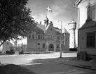 Gefle Teater. I norra änden av Rådhusesplanaden. Invigdes 1878. Axel Fredrik Nyström ritade och byggmästaren J. F. Lindeberg uppförde teaterbyggnaden, en av landsortens största och mest påkostade. Fotot är taget från Hantverkargatan och visar baksidan av teatern innan tillbyggnaden av Folkteatern 1983.