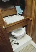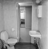 Ett litet barn sitter på toaletten i väntan på hjälp. Katrinebergs daghem, 1992-93.