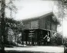 Bilder av släkten Brodin från hemmet på Norrlandet, två kvinnor och en flicka utanför deras hus.