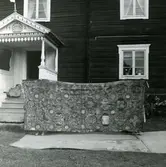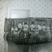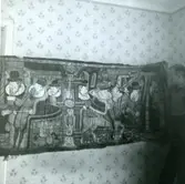 Arboga sn, Älholmen, (Ellholmen). Herrgården. Interiör. Väggfält med bemålade, ditspikade vävtapeter, före konservering. 1973.