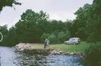 Ånnaboda 12 februari 1968 En grupp personer bestående av ett barn och ett antal vuxna är på skidutflykt i Ånnaboda. De är klädda i jackor, byxor, mössor, vantar och pjäxor. De har skidor på fötterna och stavar i händerna.