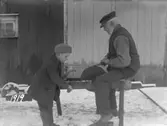 "Vedsågning. Johan Johanssons hem. Johannes A."