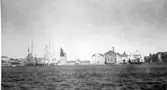 Vy över området för Atlas verkstäder mot nordost från Sankt Eriksbron. I fonden flerbostadshus längs Odengatan, Gustav Vasa Kyrka och Vasaparken.