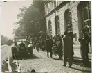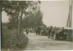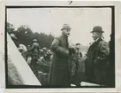 A. Divo i en Talbot Darracq rundar en trafikskylt i en kurva. International tourist trophy car races i Isle of Man. Fotografi från John Neréns motorhistoriska samling.
