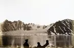 "Smeerenbergbay, d.18 Juli 1873." Tre oidentifierade personer i förgrunden.