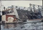 Vasa, med sitt provisoriskt byggda akterparti, efter det sista lyftet.