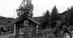 Ekonomibyggnader med stråtak i Böle. Brunnsvingel, slipsten och gärdsgård finns i gården.