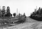 Foto c:a 1880. Till höger Kalmarvägen, till vänster Smedbyvägen. Vägar med gärdsgård.