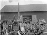 Trösklag vid en fotogenmotor "Svenske" tillverkad vid Fagerlids Gjuteri o mekaniska verkstad.