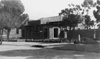 Post- och telegrafkontor i en oas i Sahara, ca 25 mil söder om Biskra. Framför postkontoret en kamel lastad med post.