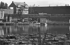 Vykort med motiv över sorteringsbommarna vid Indalsälven.