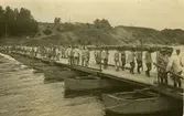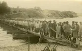 Byggnation av järnvägsbro över Viskan på linjen mellan Åskloster och Värö.