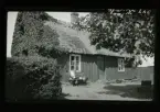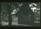 Vy över gårdsplan till handelsbod.
