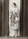 Hökerberska bröllopet 1908. Anders Johannes Hökerberg, f. 30/9 1880, stationsskrivare, Örebro. Nanny Maria Lundberg. Vigselförrättare J. Ternstedt, Fägre, vilken var en god vän till Lundberg och ofta kom ridande till Älgarås. Kyrkan var denna dag mycket vackert smyckad med bl.a. girlander av tallris och rönnbär. Reprofotograf: Gunnar Berggren.