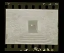 Tapetserad hall, dörr med detaljer i glaspartiet/fönstret.