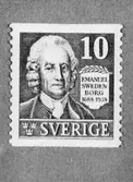 Originalteckning till frimärket "Svenska flaggans dag", 1955. Frimärket är utgivet till 50-årsminnet av den nya ljusare flaggan som ej har unionsmärke. Konstnär: Olle Olsson Hagalund.