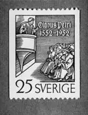Originalteckning till frimärket "Storkyrkans södra tornkapell" utgivet till Riksdagen 500 år, 1953 av Olle Hjortzberg.