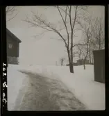 511 Gripsholms Slott för Allers. Träd vid strandkanten utanför slottets fönster.