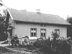 Byggnadsarbetare på kyrktrappan. År 1927 gjordes en del renoveringsarbeten i Kyrkefalla kyrka.