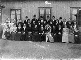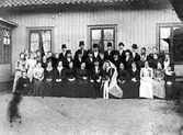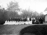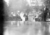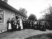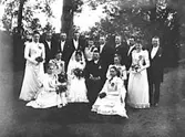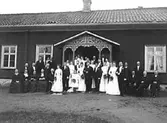 Brudpar med släkt och vänner. Bruden är Elsy Larsson från Tidan.