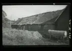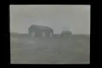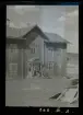 Fotografens anteckning: Dito gård (Karl Anton Holmbergs gård) en gammal "bastu" som "dom har torkat korn i" + hustru Josefina H. (Holmström).