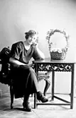 Enligt text på fotot: "I trädgården vid Kavlås. Hit kommo vi med järnväg från Stenstorp den 25 juli vid 12-tiden. Denna egendom omfattade ca 1400 tnd. Den ägdes av Riksmarskalken Frih. von Essen. Denne fyller 90 år den 30 dennes. Var av ålderdom sängliggande". Enligt notering: "Kavlås egendom, 25 juli 1921".