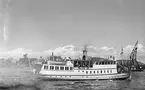 Identiskt fotografi i CG Jacksons samling med Acc nr 1956:1055, Fo22082. Fotodatum 1952-08-15, fartyget lämnar Vaxholm på ingående till Stockholm
