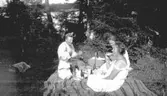 En utflykt till Rullsand under Elna Brundins sista sommar. Eva Brundin till vänster, en sovande Anna Larsdotter Olsson (Elnas mor), Elna själv, Elnas halvsyster Elisabet (Lisa) och David Brundin.