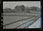 Fotografens anteckning: Fru Markströms gård med kyrkan i bakgrunden.