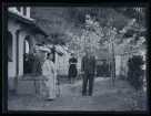 Elsa, Gudrun och en hund sitter bland vitsipporna på tomtetn till familjen Morthensens villa Solveden, Djursholm.