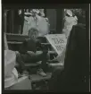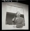 Porträtt av skådespelaren Gunnar Sjöberg under föreberedelser framför spegeln i en sminkloge.