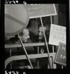 Skådespelaren Gunnar Sjöberg och kollega under föreberedelser framför spegeln i en sminkloge.