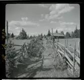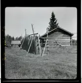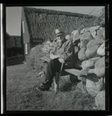 Tre fotografier tagna utomhus av lantbrukaren J B Bengtsson på Karshult gård i Gällinge. Född 1858-10-24, död 1950-06. Han står vid en husknut med odlingslandskapet i bakgrunden. Tillhör samlingen med fotokopior från Hallands Nyheter som är från 1930-1940-talen.