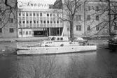 Elevatorn vid Ångkvarnen i Kalmar suger spannmål från en båt.