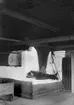 "Värmland, Östmark socken, Johala. Interiör av rökstuga. Den yngsta av de ägande bröderna, Johannes Jonsson, liggande på ugnen."