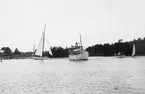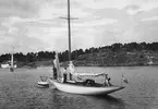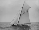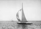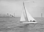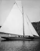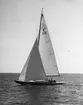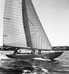 [text på baksidan av den ram där kopian tidigare varit monterad, återlämnad till Anita Dahlfors:] "9-m R-yachten TULLA byggd 1914 Johan Anker Asker Norge exploderad 1959 foto 1955 av en engelsman Kennet [sic] Robertson"